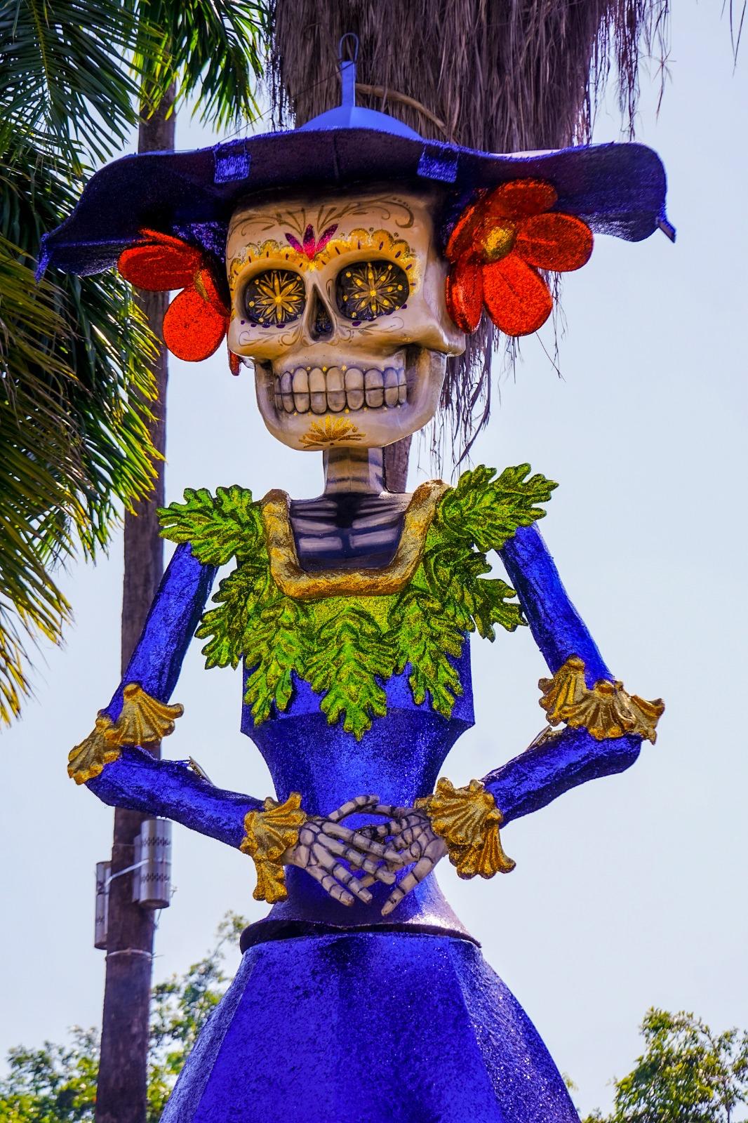 La escultura combina el uso de flores naturales, estructuras metálicas y una estética inspirada en la tradición mexicana de honrar a los difuntos, adaptada al lenguaje contemporáneo y festivo de las celebraciones mazatlecas.