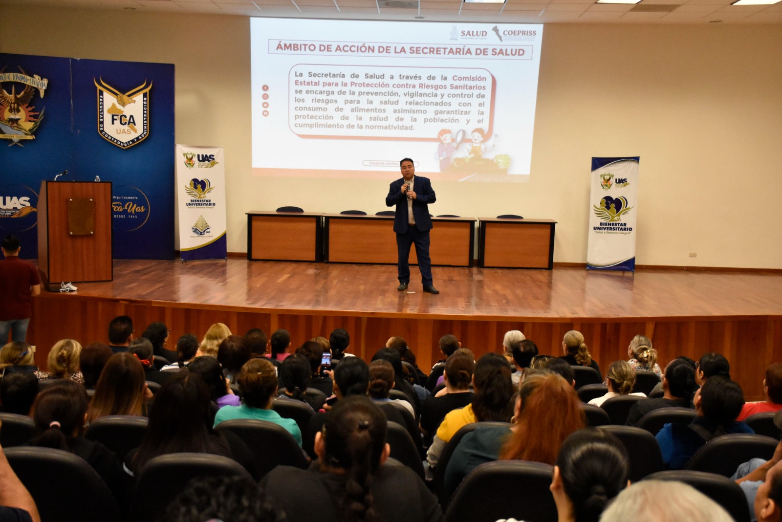 La Universidad Autónoma de Sinaloa (UAS), a través de la Unidad de Bienestar Universitario (UBU) y en coordinación con la Comisión Estatal para la Protección contra Riesgos Sanitarios de Sinaloa (COEPRISS), impartió a los locatarios de las tienditas escolares el taller “Buenas prácticas de higiene para el proceso de alimentos, bebidas y suplementos alimenticios”, como parte del programa Vive Saludable, Vive Feliz.