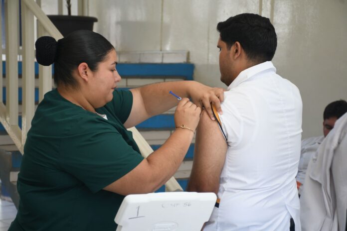 Por su parte, la enfermera Grisel Velarde Valenzuela, encargada de las brigadas del IMSS, destacó que esta jornada está especialmente dirigida a estudiantes de nivel superior de las facultades de Medicina, Enfermería, Trabajo Social y Psicología, con una meta de aplicación superior a las 150 dosis para fortalecer la barrera inmunológica de los jóvenes.