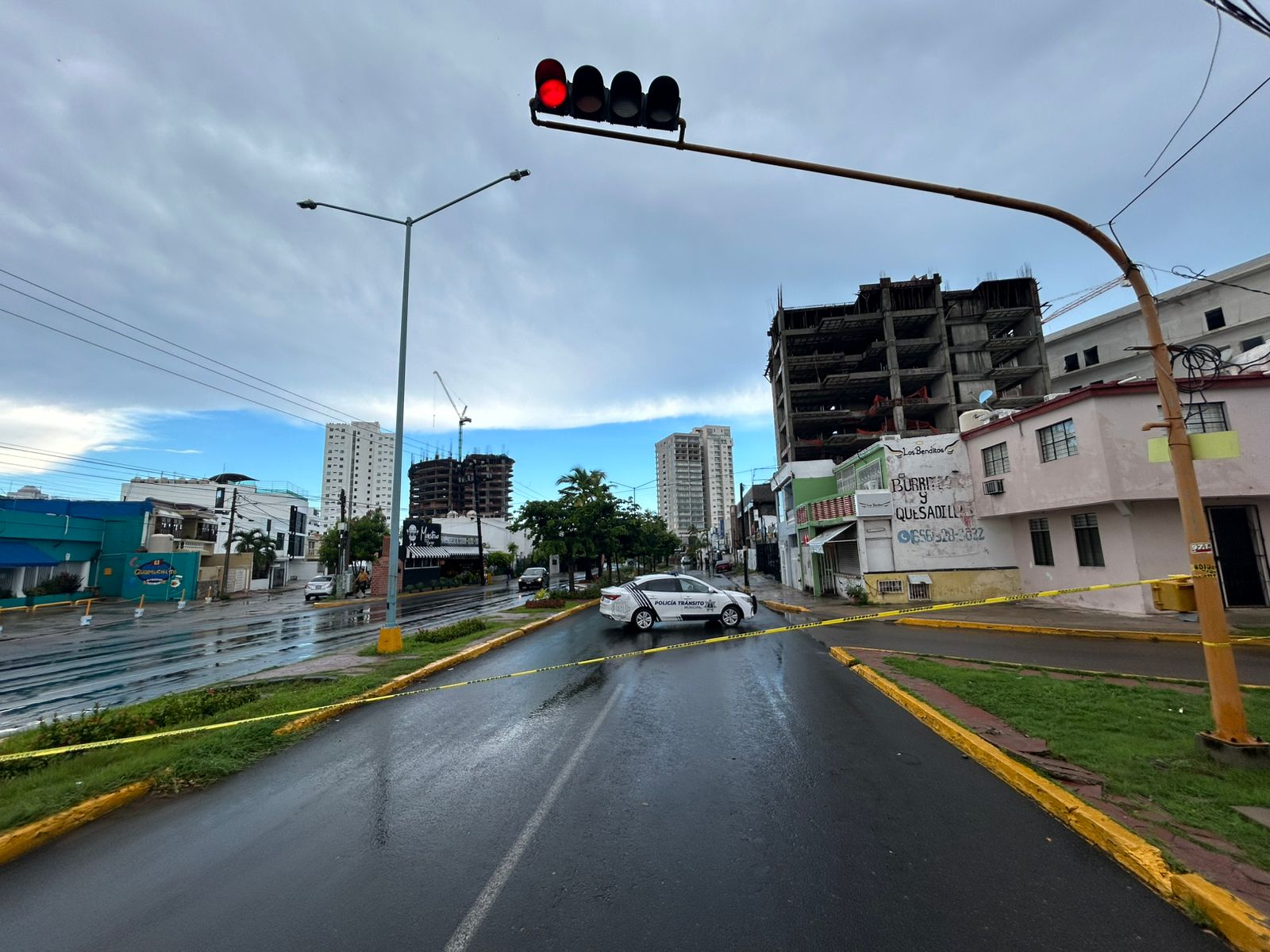 La oficina de la Unidad de Vialidad señaló que, por el desbordamiento de la Laguna del Camarón, el cruce vial de la avenida Insurgentes y Reforma con sentido al poniente, es decir, hacia el malecón, se mantiene cerrado a la circulación, con la finalidad de evitar situaciones de alerta entre las personas que transitan por allí.