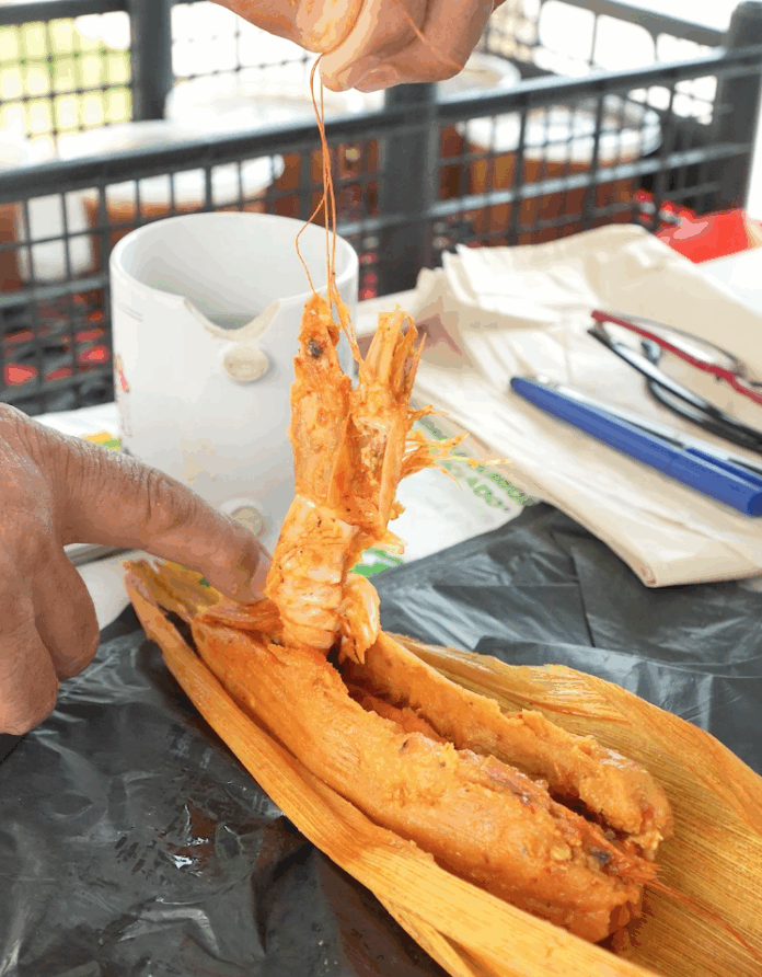 Don Moisés, 66 años, pero con mucha alegría para vivir la vida y mejor como vendedor ambulante para ofrecer los mejores y originales tamales de Escuinapa: “Barbones” de camarón y pelados, de costillitas y res, y seguir con el postre unos ricos frijoles con chorizo y sardina, también muy originales.