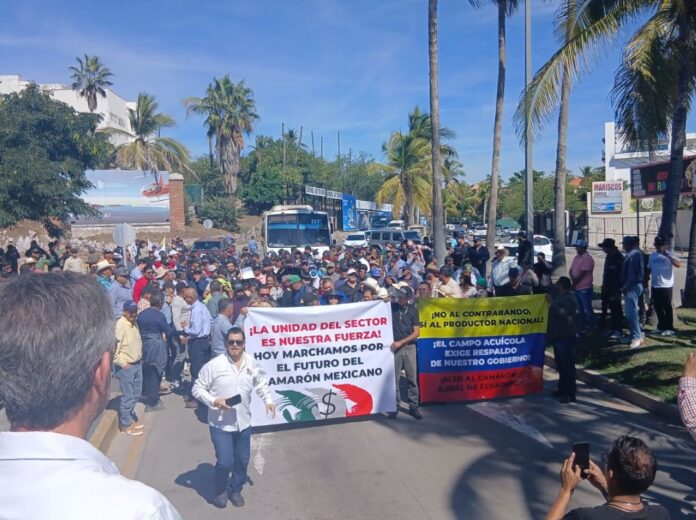 Unos 200 productores acuícolas de los estados de Sonora, Nayarit y por supuesto de Sinaloa, arribaron al filo del mediodía hasta las instalaciones de la Conapesca en Mazatlán para exigir a las autoridades que se detenga el contrabando de camarón de países de Sudamérica, como Ecuador, que afectan la producción de miles de productores de más de mil 700 granjas en el país.