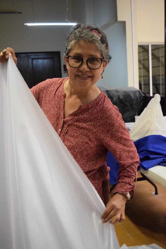Bajo la coordinación de Elisa Espinosa, un equipo de nueve costureras artesanas —incluyendo a especialistas como Olga Santos, quien opera la potente maquinaria Yamato— transforma metros de tela en piezas de arte que vestirán a las comparsas oficiales y de exhibición.