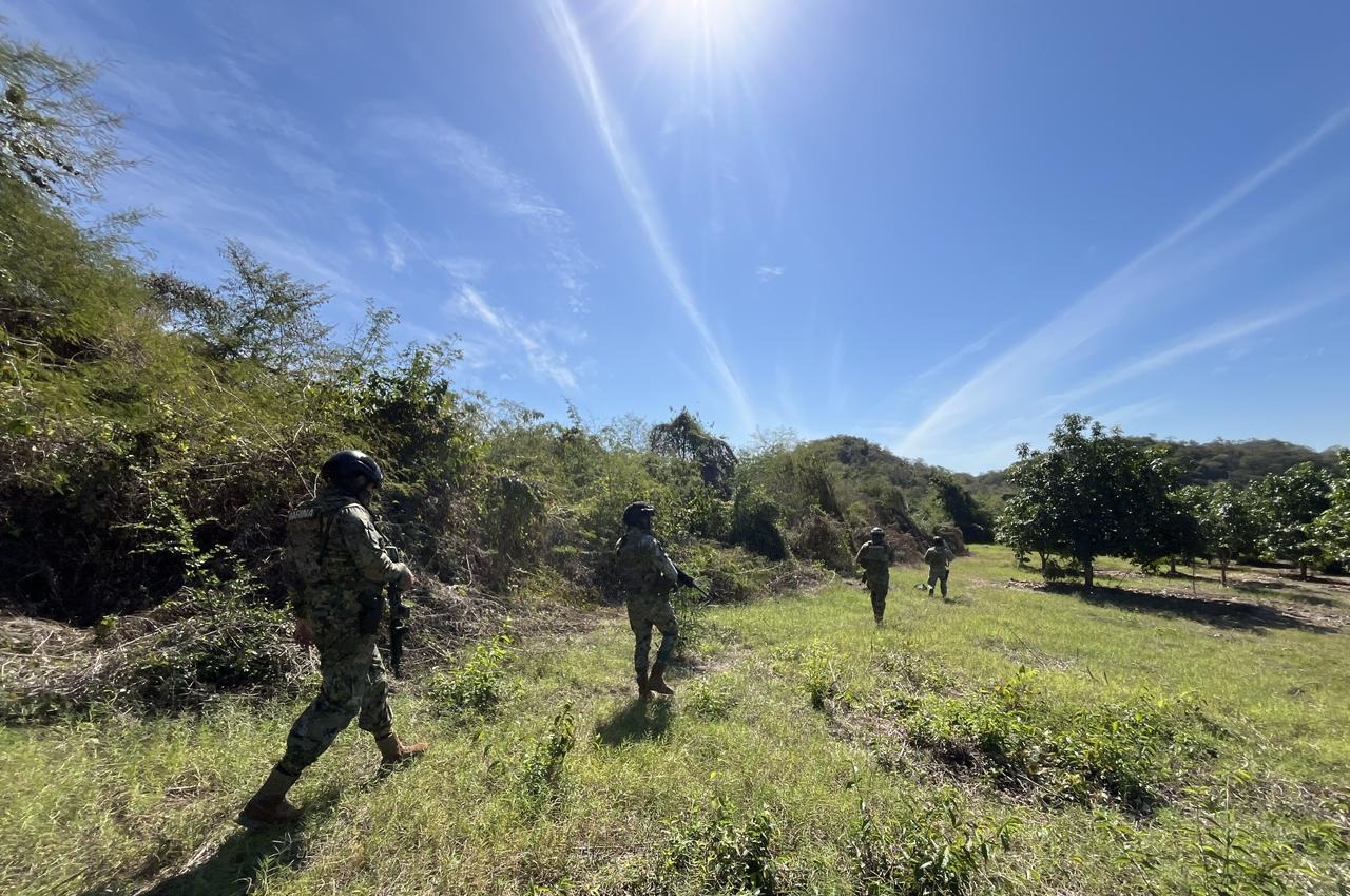 El primer evento, se llevó a cabo durante un operativo realizado en coordinación con la Secretaría de Seguridad Pública Ciudadana (SSPC) en el poblado La Escondida, municipio de Escuinapa, donde se localizó un campamento presuntamente empleado por grupos delictivos; asimismo, se encontraron dos cubitanques vacíos y mangueras con olor similar combustible, presuntamente utilizados para actividades ilícitas.