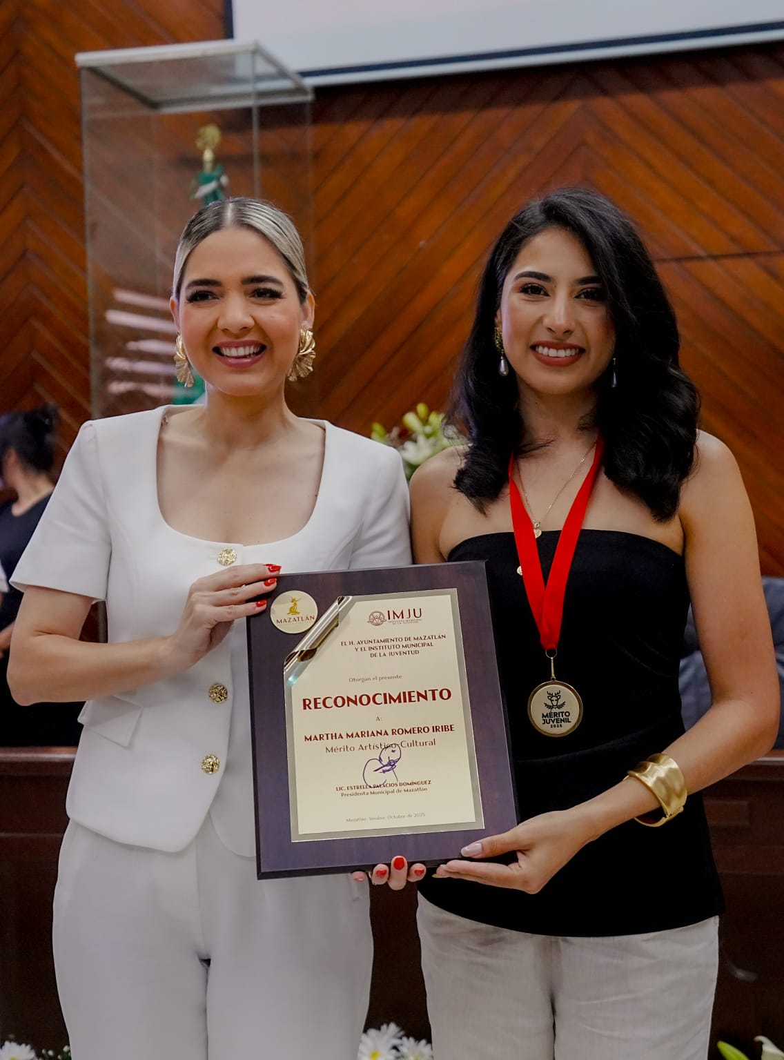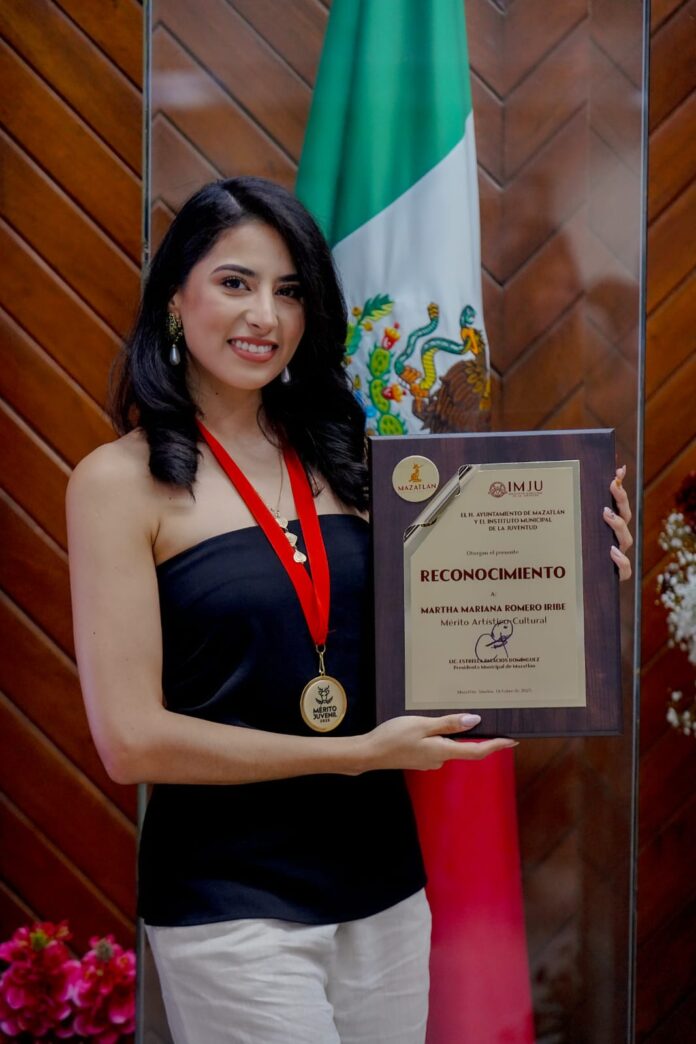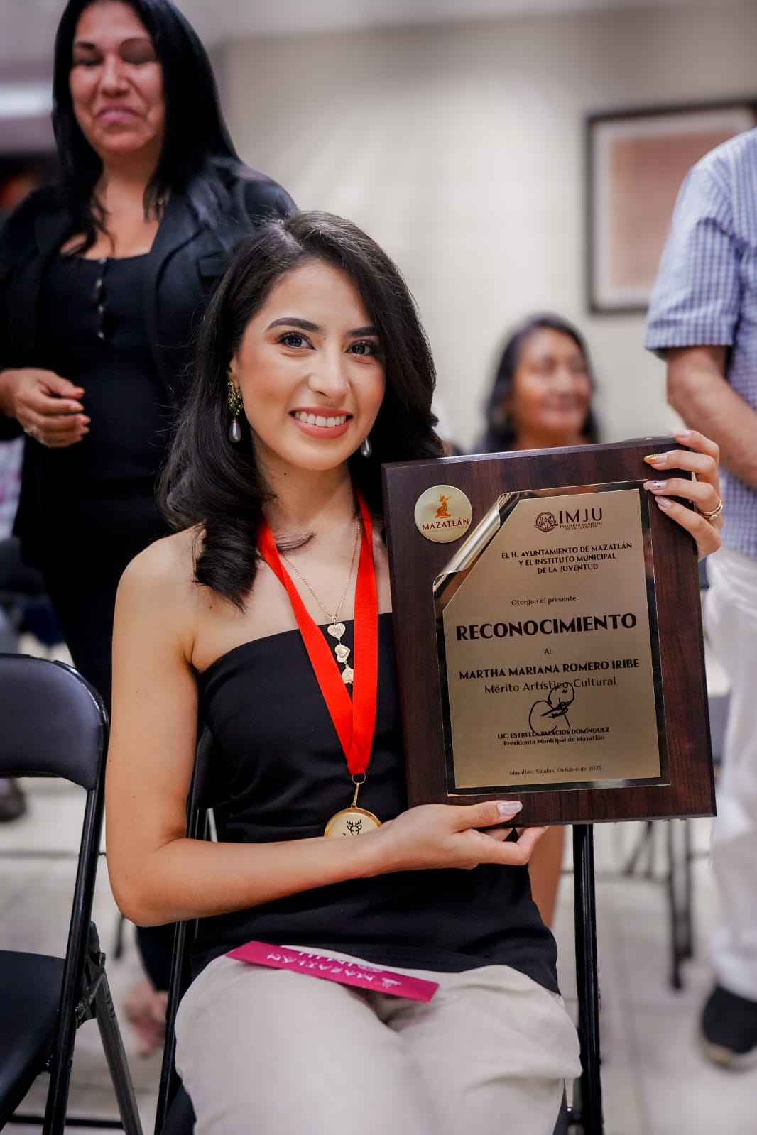 Martha Mariana Romero Iribe, egresada de la Escuela Municipal de Ballet Clásico recibió el Premio al Mérito Juvenil Mazatlán 2025, otorgado por su trayectoria, disciplina y el impacto social de su labor en la danza. La ceremonia se realizó este jueves en sesión solemne del H. Ayuntamiento de Mazatlán, encabezada por la Presidenta Municipal Constitucional de Mazatlán, Estrella Palacios Domínguez.