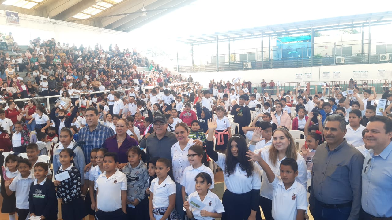 La presidenta el DIF de Mazatlán, Mayte Apodaca, dio un emotivo mensaje a niños de educación primaria de la zona urbana y rural durante el acto en que recibieron 800 pesos, como becas de dos meses. En acto fue testificado por el alcalde porteño, Edgar Augusto González Zatarain y los regidores de Morena, Roberto Rodríguez y Jesús Osuna Lamarque y del PAN, Martín Pérez.