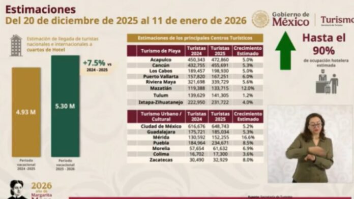 Este comportamiento positivo también se reflejó en la ocupación hotelera, la cual en noviembre de 2025 fue 14.4 puntos porcentuales superior a la registrada en el mismo mes de 2024, consolidando a Mazatlán como uno de los destinos turísticos más dinámicos del país.