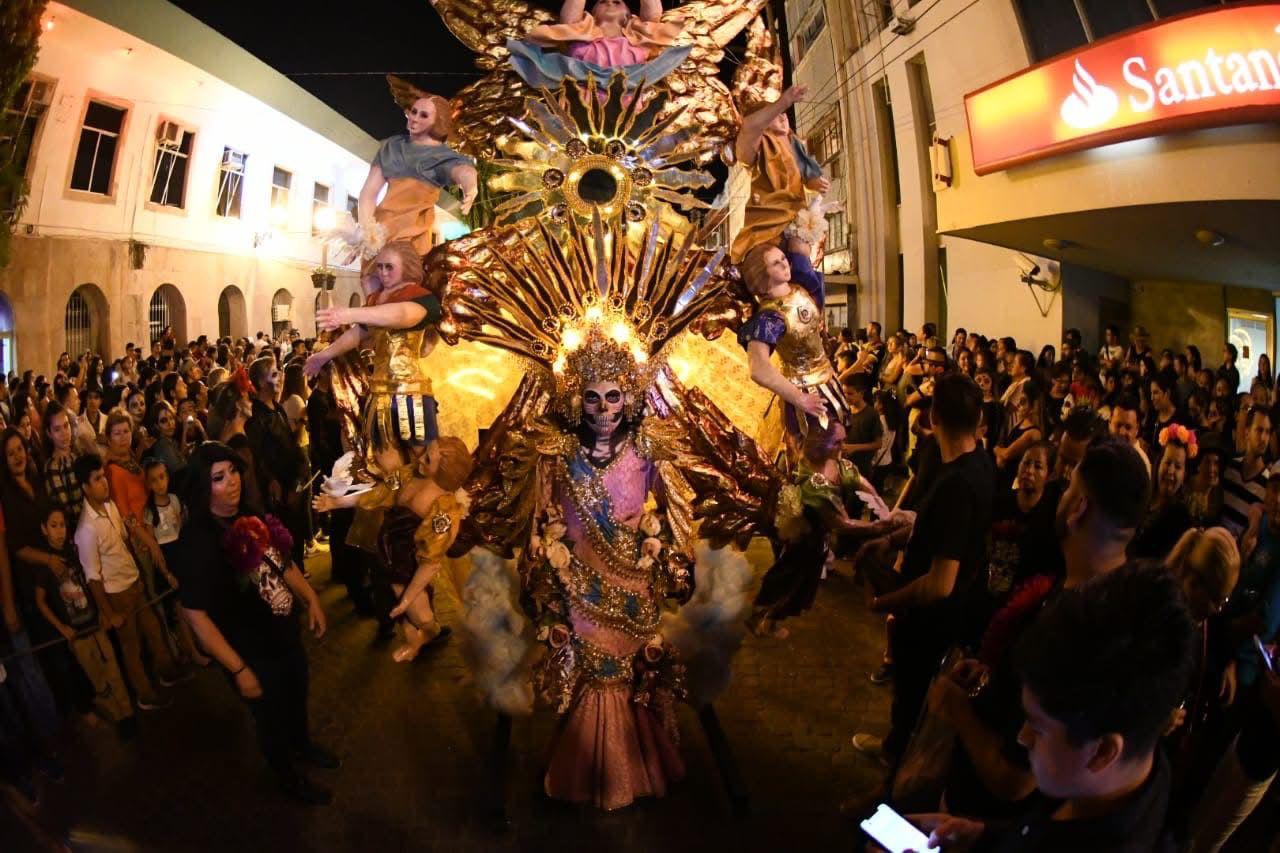 La callejoneada contará con alegres comparsas, espectáculos de lanzafuegos, música envolvente y los icónicos personajes de ultratumba. El recorrido será encabezado por la espectacular Catrina, creación única del artista mazatleco Luis Antonio Ríos, conocido como “El Momo”. Sus obras han trascendido fronteras y serán admiradas en Tokio, Japón del 31 de octubre al 30 de noviembre.