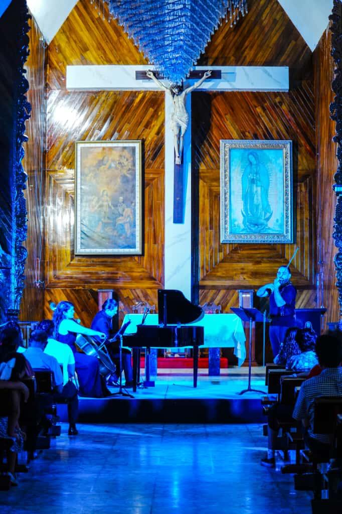 Una atmósfera de profunda calma y elevación espiritual se vivió este miércoles en la Iglesia Sagrada Familia, en el Fraccionamiento Gaviotas, donde Adagio Trio transformó la noche en un bálsamo de fe y esperanza como parte del programa «Cultura con Historia» llevado a cabo por el Instituto Municipal de Cultura, Turismo y Arte en el marco del Festival Cultural Mazatlán 2025.