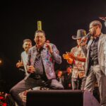 “El Gigante de la Banda” puso a cantar al público con clásicos como: “Mi gusto es”, “Leña de Pirul”, “El Palomito”, y “Un rinconcito en el cielo”, para después junto a “El Flaco” interpretar “Soy de Mazatlán”, causando euforia entre los presentes.