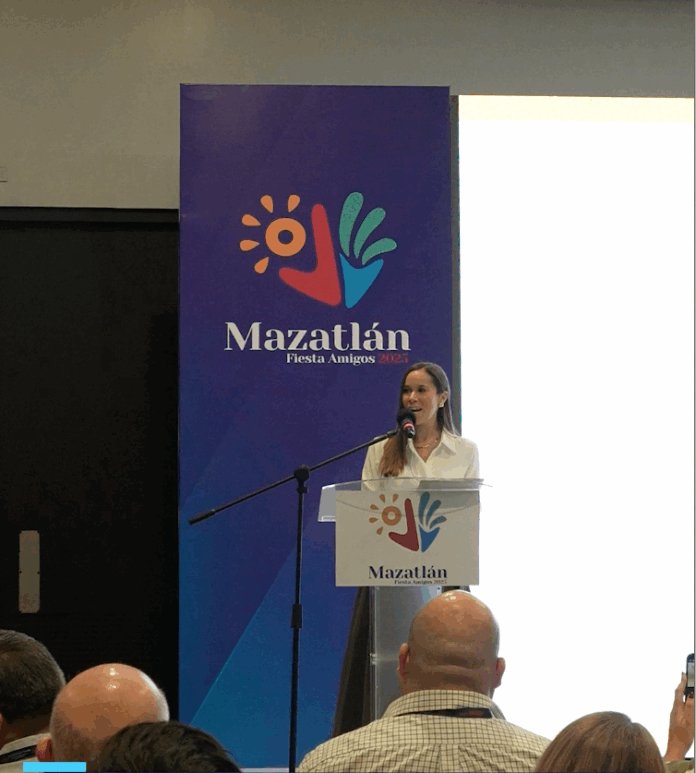 Mireya Sosa habló por más de 20 minutos sobre el destino y todos sus grandes atractivos e insistiendo en la campaña estatal y nacional “Mazatlán un Mar de Historias”. Subrayó que Mazatlán lo tiene todo como uno de los mejores destinos turísticos de México.