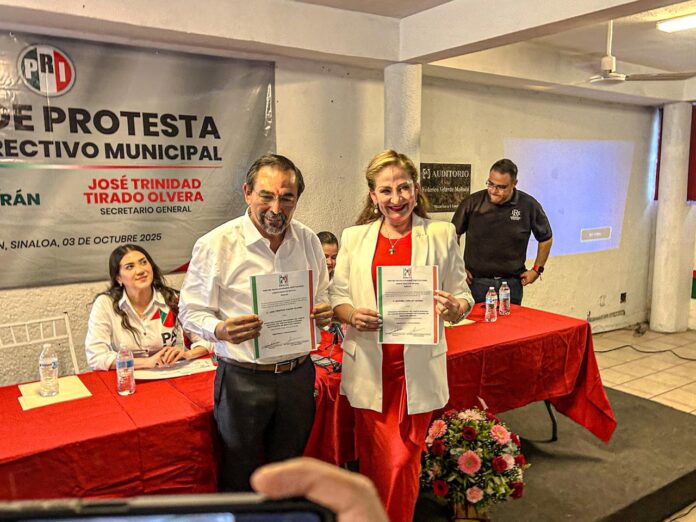Después de 45 Minutos de lo programado, Maribel Chollet Morán y José Trinidad Tirado tomaron protesta como nuevos dirigentes del PRI en Mazatlán, la primera como presidenta y el segundo como secretario general. La senadora Paloma Sánchez clausuró el.protocolo tricolor y criticó a los malos gobiernos de Morena, pues ni en los «peores tiempos del PRI habíamos estado tan jodidos».