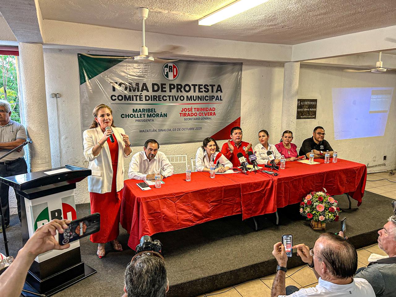 César Emiliano Gerardo, como dirigente estatal les tomó protesta a la Chollet y a Tirado y señaló que el partido, en una posible alianza con el PAN, habra de trabajar mucjo para recuperar la alcaldía de Mazatlán y el gobierno del estado en las elecciones del 2027. Reiteró en sus críticas a los gobiernos de Morena qie no han sabido garantizar la paz y la tranquilidad de los sinaloenses.