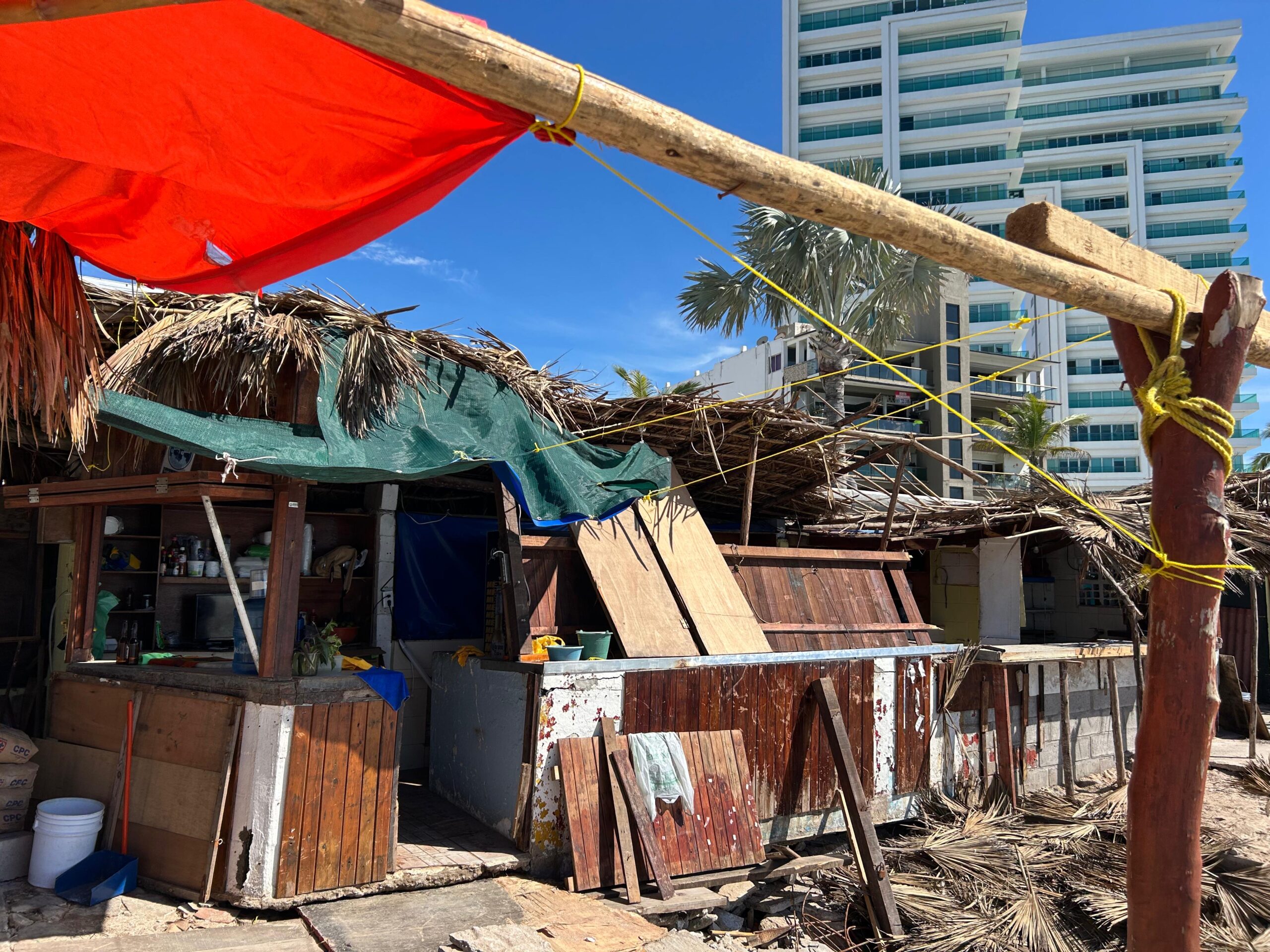 “La destroza que hizo no la esperábamos, porque el huracán iba mar abierto, pero el oleaje estuvo muy fuerte y subió tanto el agua que tumbó la palapa, se dañó la loza de concreto, el cimiento y la ramada, además de loza que usamos para preparar los mariscos”, explicó.