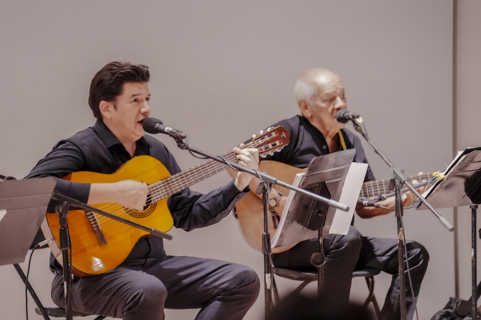 El repertorio incluyó algunas de las piezas más emblemáticas de Serrat y Sabina, que despertaron la emoción de los asistentes con melodías como: «Las pequeñas cosas», «Contigo», «Tan joven y tan viejo» y «Quinientas noches». Además, se interpretaron bellos poemas, entre ellos el «Poema de amor» de Serrat, «Pendiente de ti» y «Es caprichoso el azar».