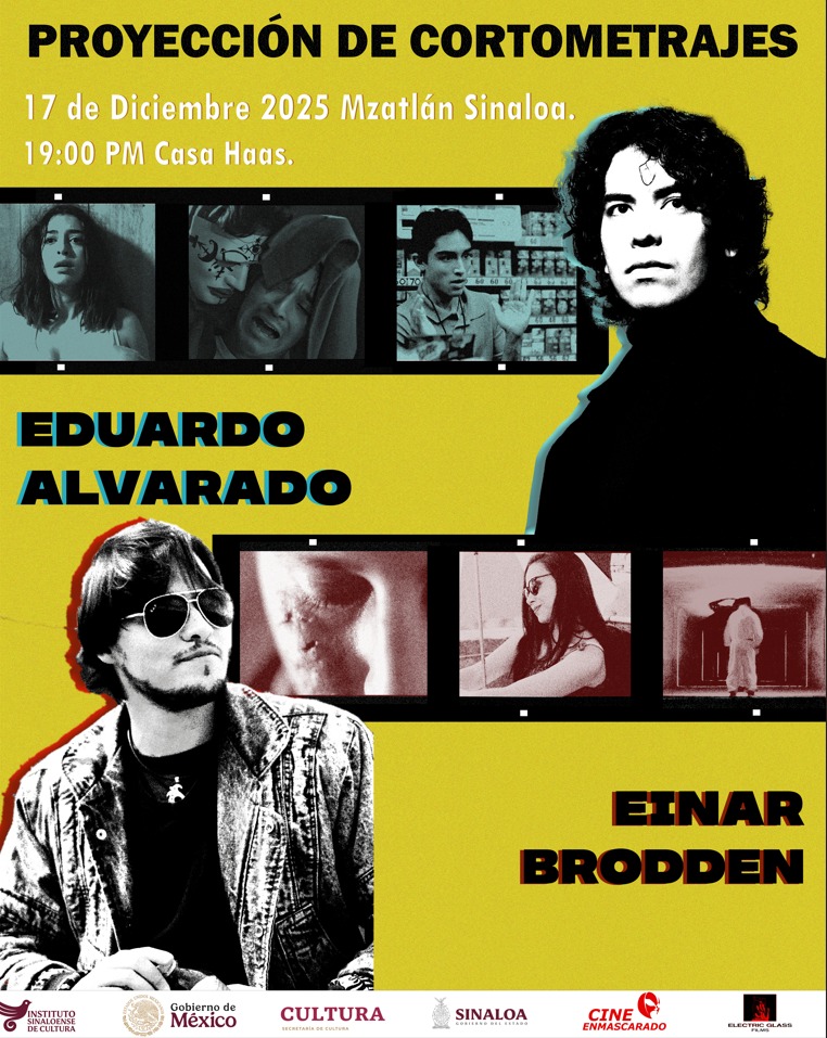 El talento local regresa a casa. El público mazatleco está invitado a una noche especial de cine con la proyección de una selección de cortometrajes dirigidos por los jóvenes cineastas Eduardo Alvarado y Einar Brodden. La cita es el miércoles 17 de diciembre a las 7:00 pm en Casa Haas. Entrada libre. Cupo limitado.