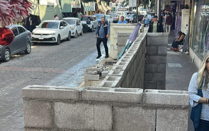 Las bardas que actualmente se construyen sobre las banquetas del Centro, frente al Mercado Pino Suárez, forman parte del proyecto de electrificación de este recinto y servirán para instalar los tableros de los medidores eléctricos, informó el presidente de la mesa directiva del mercado, Roberto Vega.