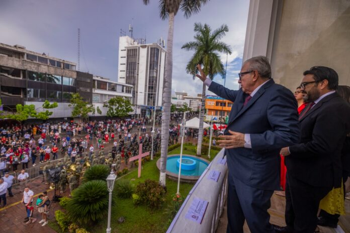Culiacán, Sinaloa, 16 de septiembre de 2025.- Conmemorando el 215 aniversario del inicio de la guerra de Independencia de México, el Gobernador Rubén Rocha Moya, presenció, desde el balcón del Ayuntamiento, el tradicional desfile militar, como un homenaje al legado de nuestros héroes que nos dieron patria.