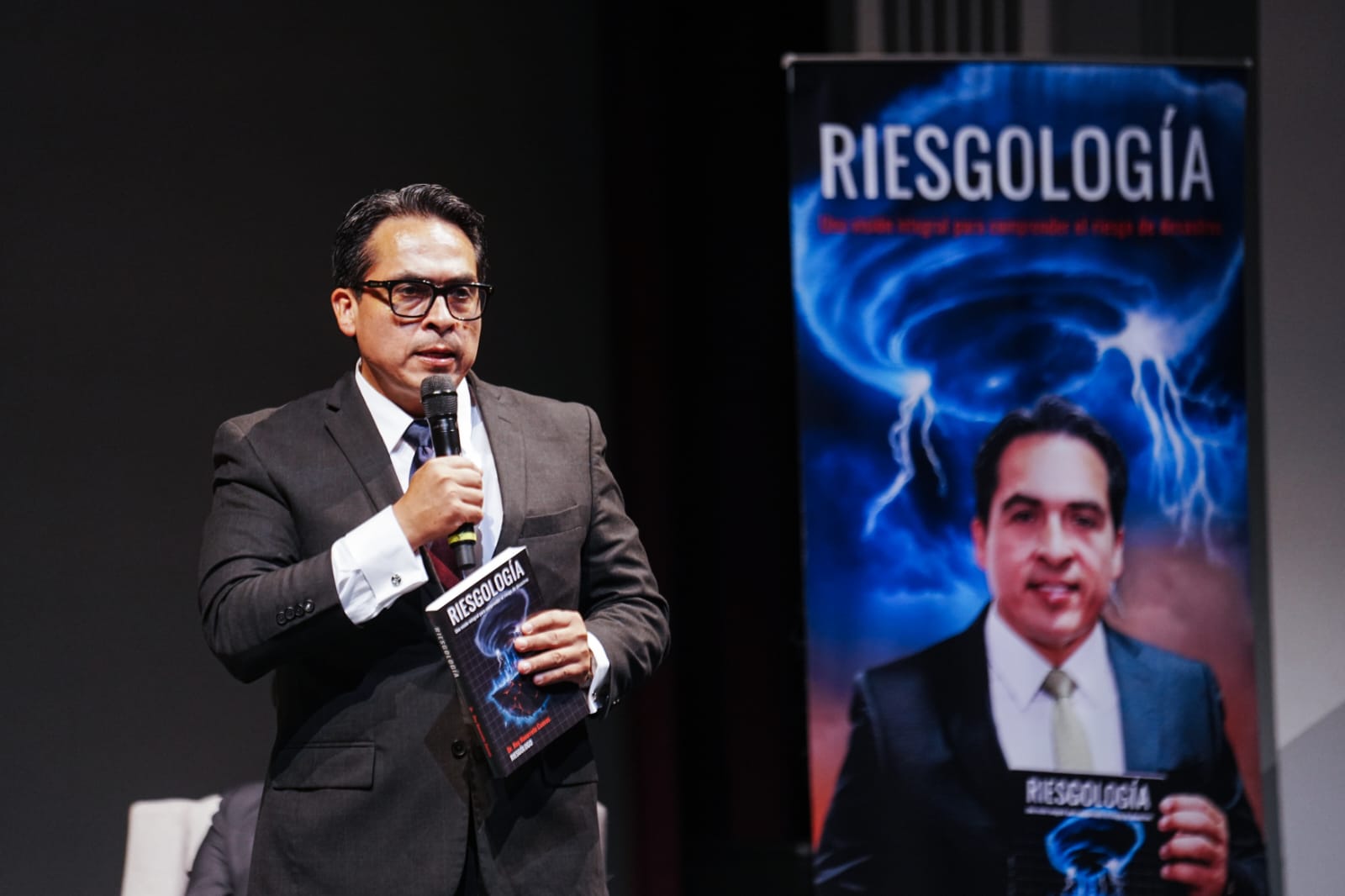 Ante un Teatro Ángela Peralta lleno de estudiantes, expertos en protección civil, empresarios y público en general, el Doctor Roy Navarrete Cuevas, Director del Instituto Estatal de Protección Civil de Sinaloa, presentó su libro “Riesgología. Una visión integral para comprender el riesgo de desastres”.