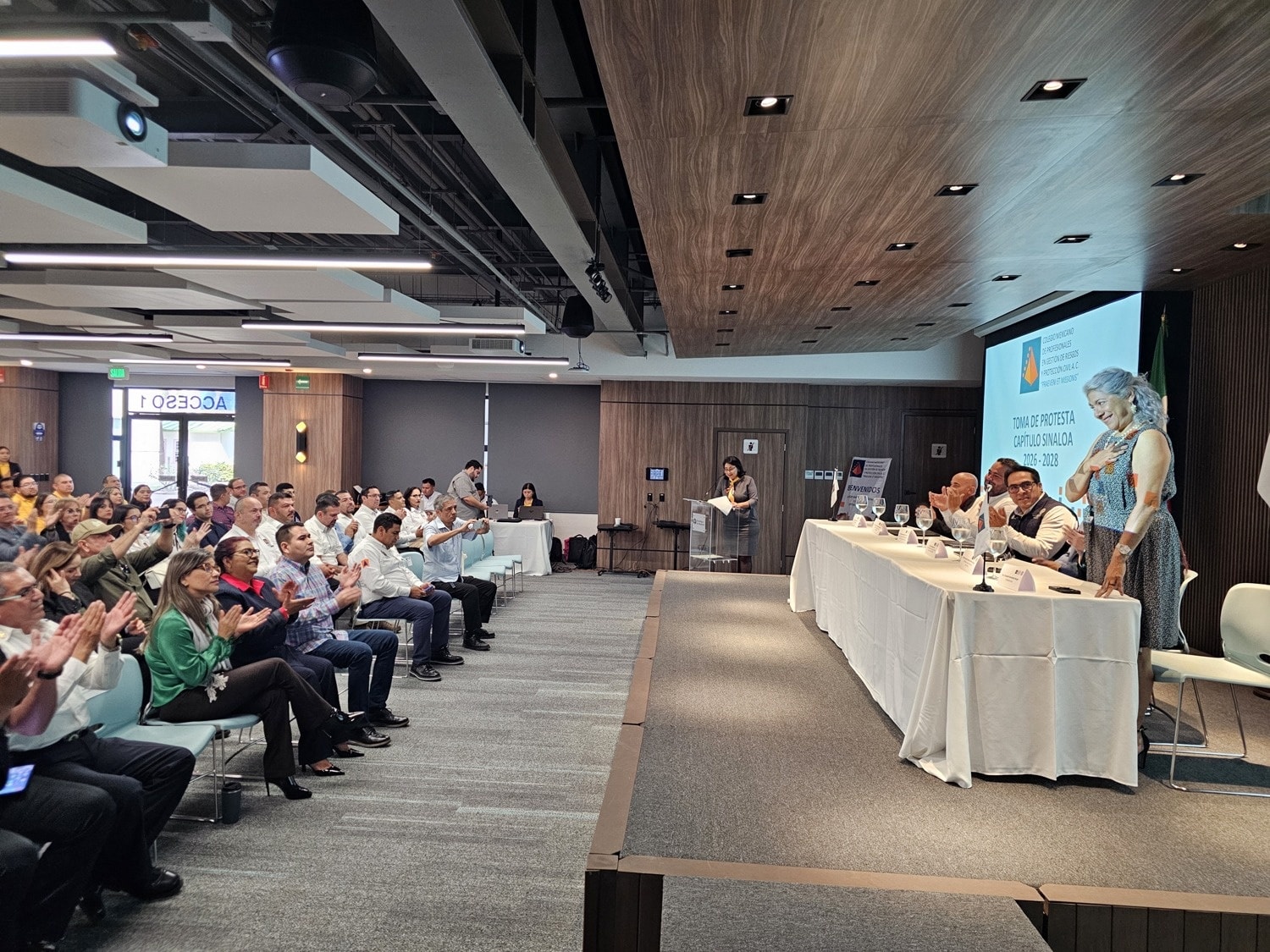 El evento tuvo lugar en la Sala de Usos Múltiples del Instituto Tecnológico y de Estudios Superiores de Monterrey y fue organizado en coordinación con el Instituto Estatal de Protección Civil de Sinaloa para rendir protesta a la mesa directiva 2026-2028, además de impartir dos conferencias magistrales.