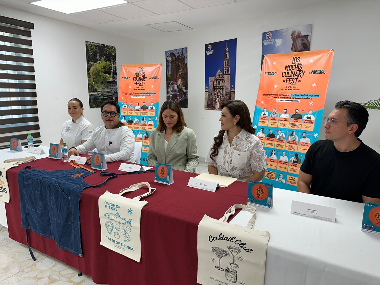 Desde las instalaciones de la Secretaría de Turismo del Estado, se llevó a cabo la presentación oficial de la tercera edición de Los Mochis Culinary Fest, encabezada por el chef Martín González, organizador del evento, acompañado por la Directora de Promoción Turística, Alejandra Osuna Granados; la Directora de Turismo Ahome, Arianna Carrera Ugarte; el planner del festival, Humberto Márquez y la chef participante, Andrea Lizárraga, de Nao Kitchen Bar y Loreta.