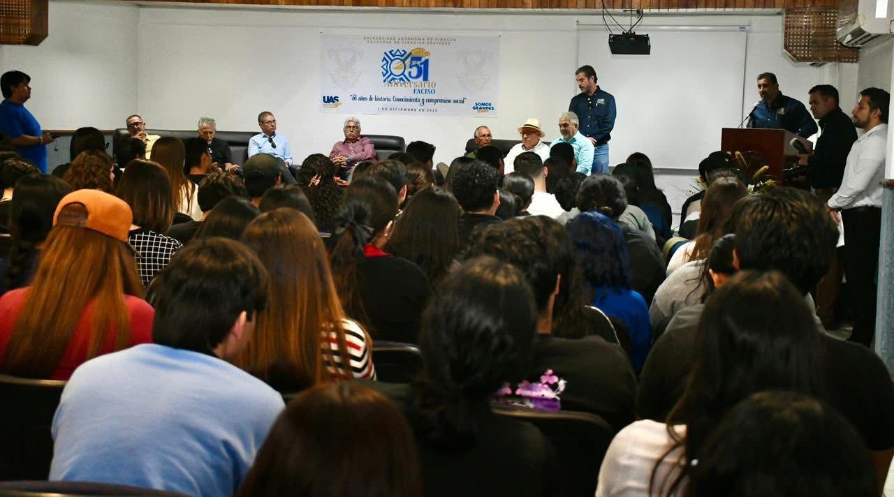 Experiencias, retos y logros fueron los compartidos durante la conmemoración del 51 aniversario de fundación de la Facultad de Ciencias Sociales Mazatlán (FACISO) de la Universidad Autónoma de Sinaloa.