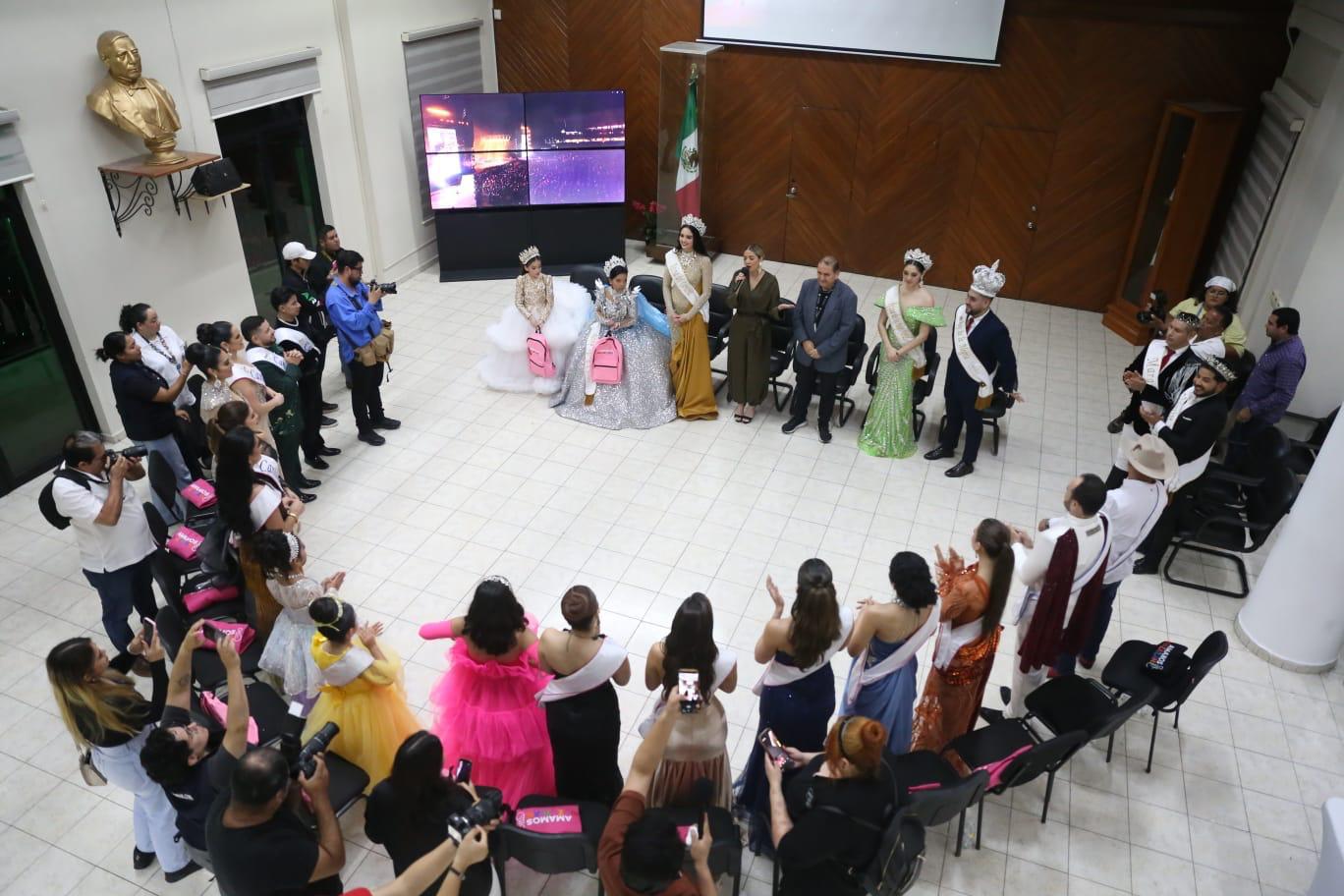 La Presidenta Estrella Palacios Domínguez recibió la noche de este viernes a las candidatas y los candidatos a los reinados del Carnaval Internacional Mazatlán 2026, “Arriba la Tambora”, en un encuentro realizado en la Sala de Cabildo del Palacio Municipal.