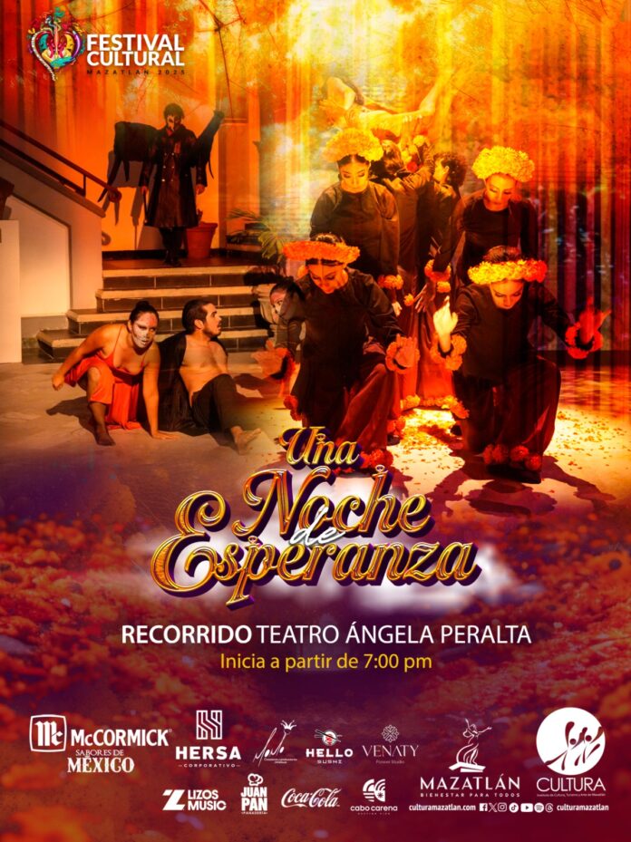 Este sábado 1 de noviembre, a partir de las siete de la noche el Centro Municipal de las Artes y el Teatro Ángela Peralta abrirán sus puertas a una “Noche de Esperanza”, uno de los recorridos más esperados del año, una experiencia artística y cultural que celebrará la memoria y la vida desde las más diversas expresiones del arte mazatleco.