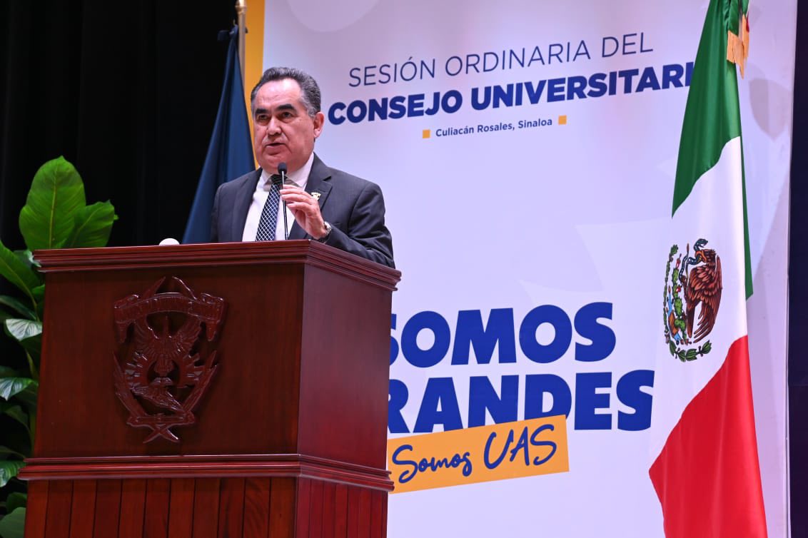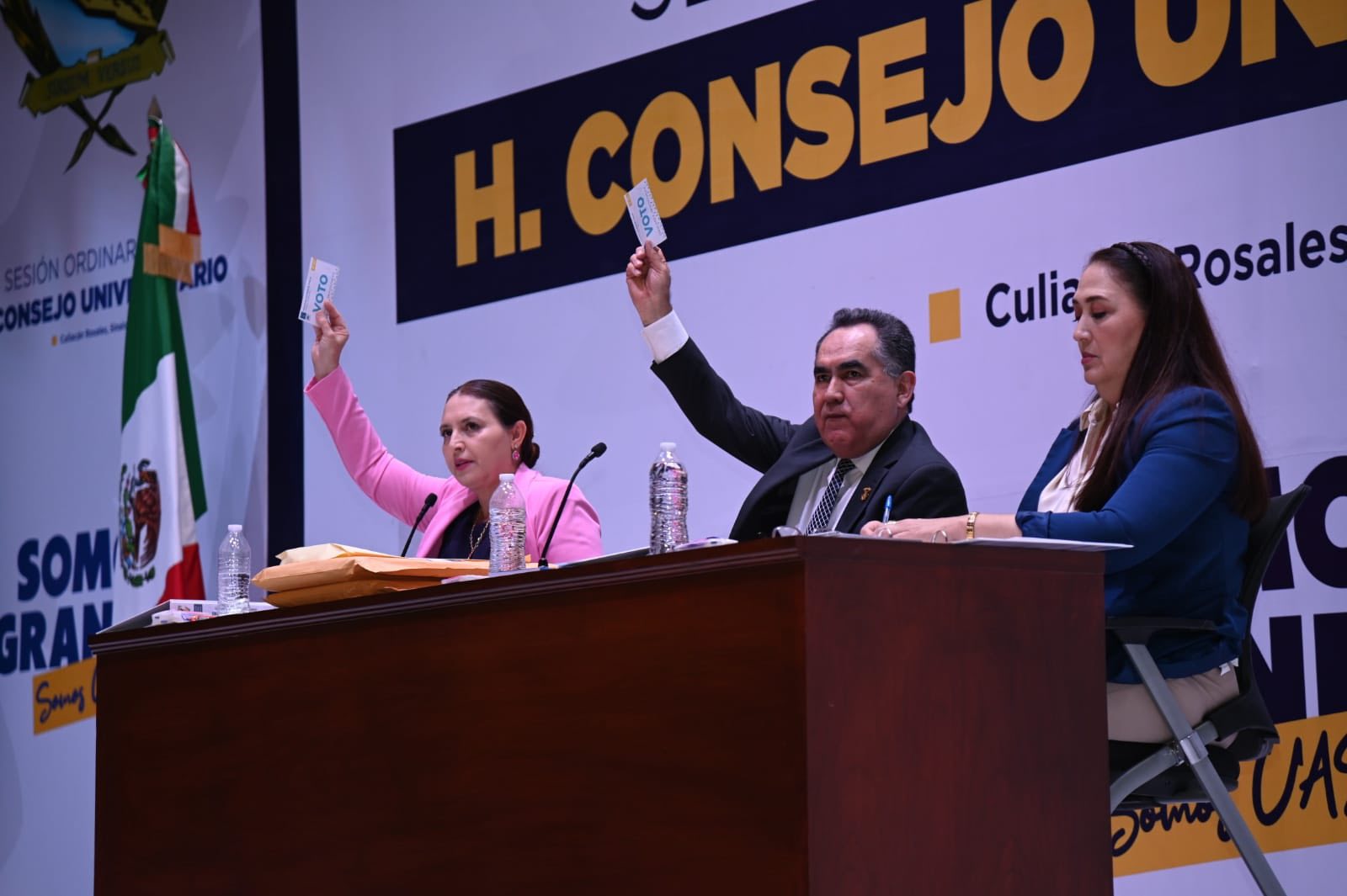 En total cumplimiento con la nueva Ley Orgánica, en Sesión Ordinaria el H. Consejo Universitario de la Universidad Autónoma de Sinaloa (UAS), tomó protesta a los nuevos integrantes de este máximo órgano colegiado de gobierno para el periodo 2025-2027, el cual se caracteriza por tener una mayor representatividad estudiantil y paridad, lo cual enriquece el diálogo y fortalece la toma de decisiones colectivas.