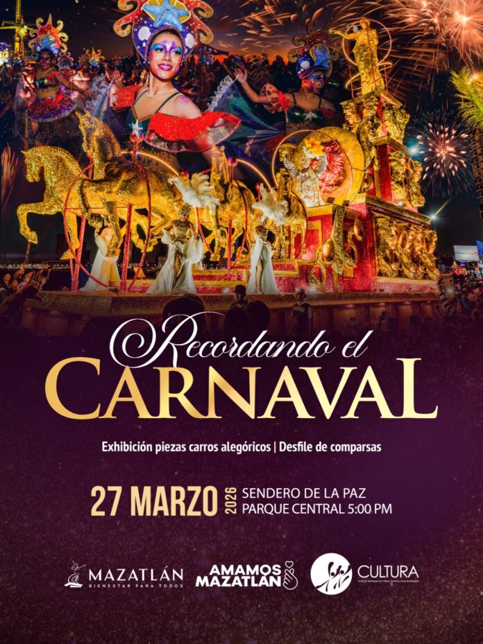 La memoria festiva de uno de los eventos más emblemáticos del puerto se hará presente en el evento “Recuerdos del Carnaval”, una celebración que invita al público a reencontrarse con la esencia, la alegría y la tradición del Carnaval Internacional de Mazatlán.