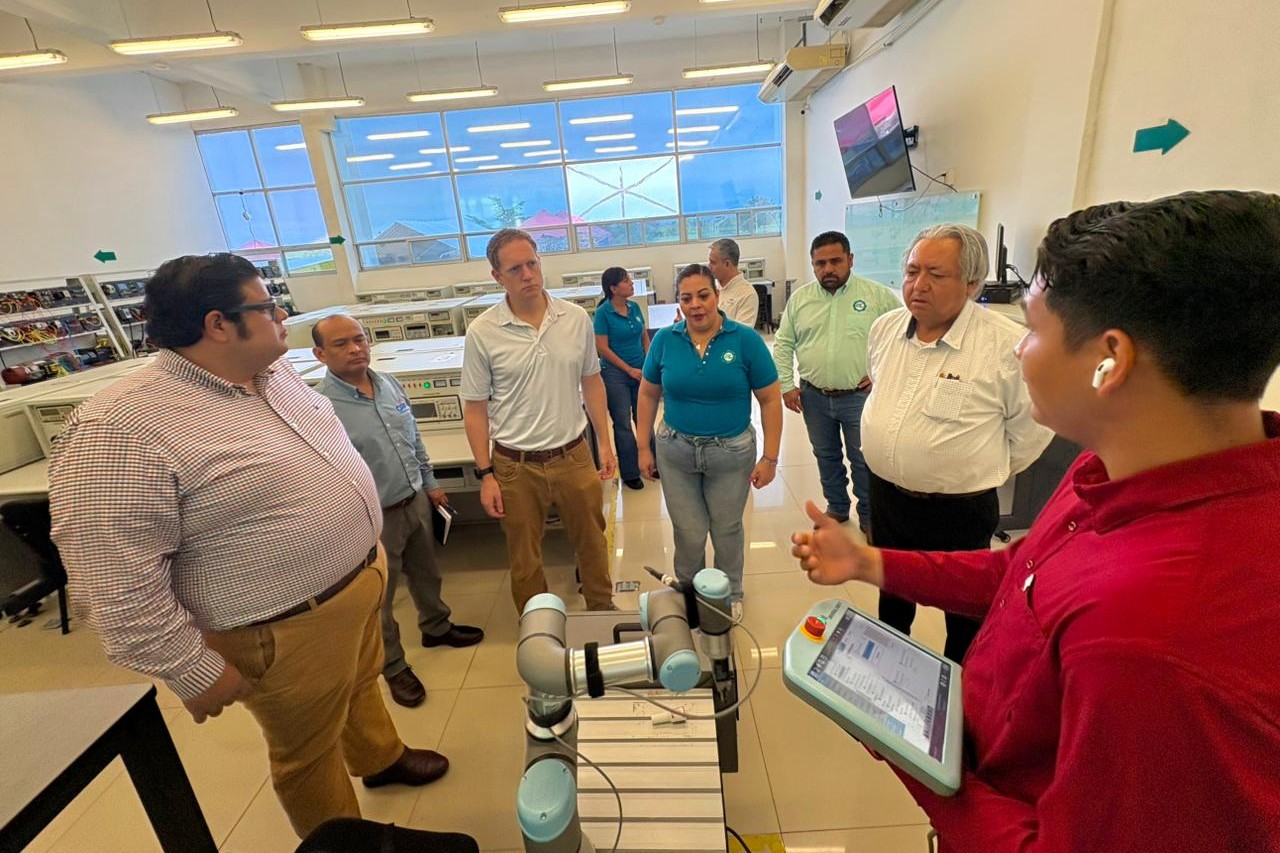 La atención por parte de UTEsc estuvo a cargo del rector, Dr. Juan Manuel Mendoza Guerrero, acompañado por el Ing. Tobías Ricardo Lozano Solorza, miembro del Consejo Directivo; Dr. Carlos Bruno Fiscal, subdirector académico; Lic. Eunice Bernardina Rendón Quevedo, jefa de Vinculación; Ing. Andrés Jasso Carabantes, jefe de Infraestructura, e Ing. Johana Rendón Bonilla, coordinadora de la Ingeniería en Mecatrónica.