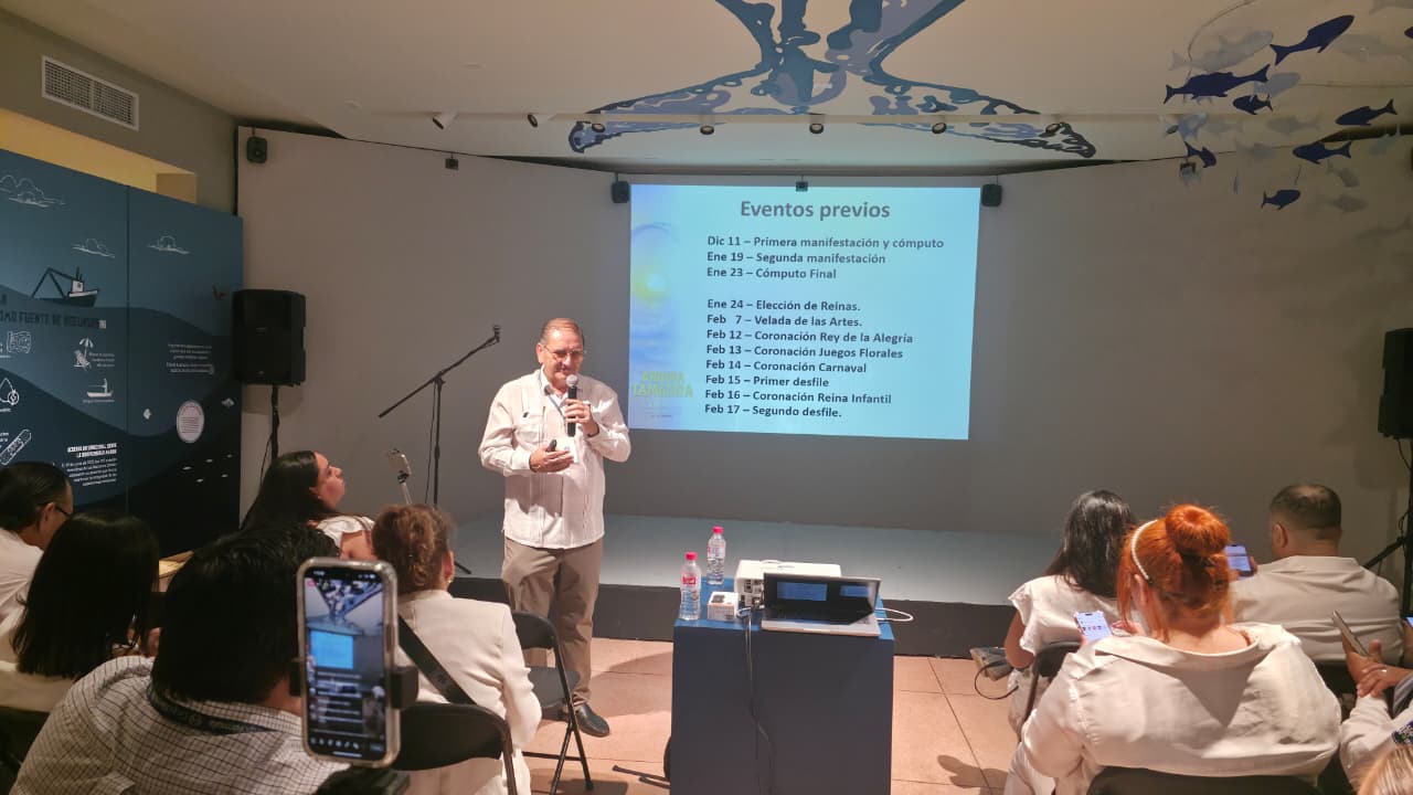 Minutos después de la festiva presentación de candidatos y candidatas en El Fuerte 31 de Marzo, Óscar García Osuna, Director General del Instituto Municipal de Cultura, Turismo y Arte de Mazatlán, ofreció una rueda de prensa en Casa del Marino para anunciar la temática oficial y el calendario del Carnaval Internacional de Mazatlán 2026.