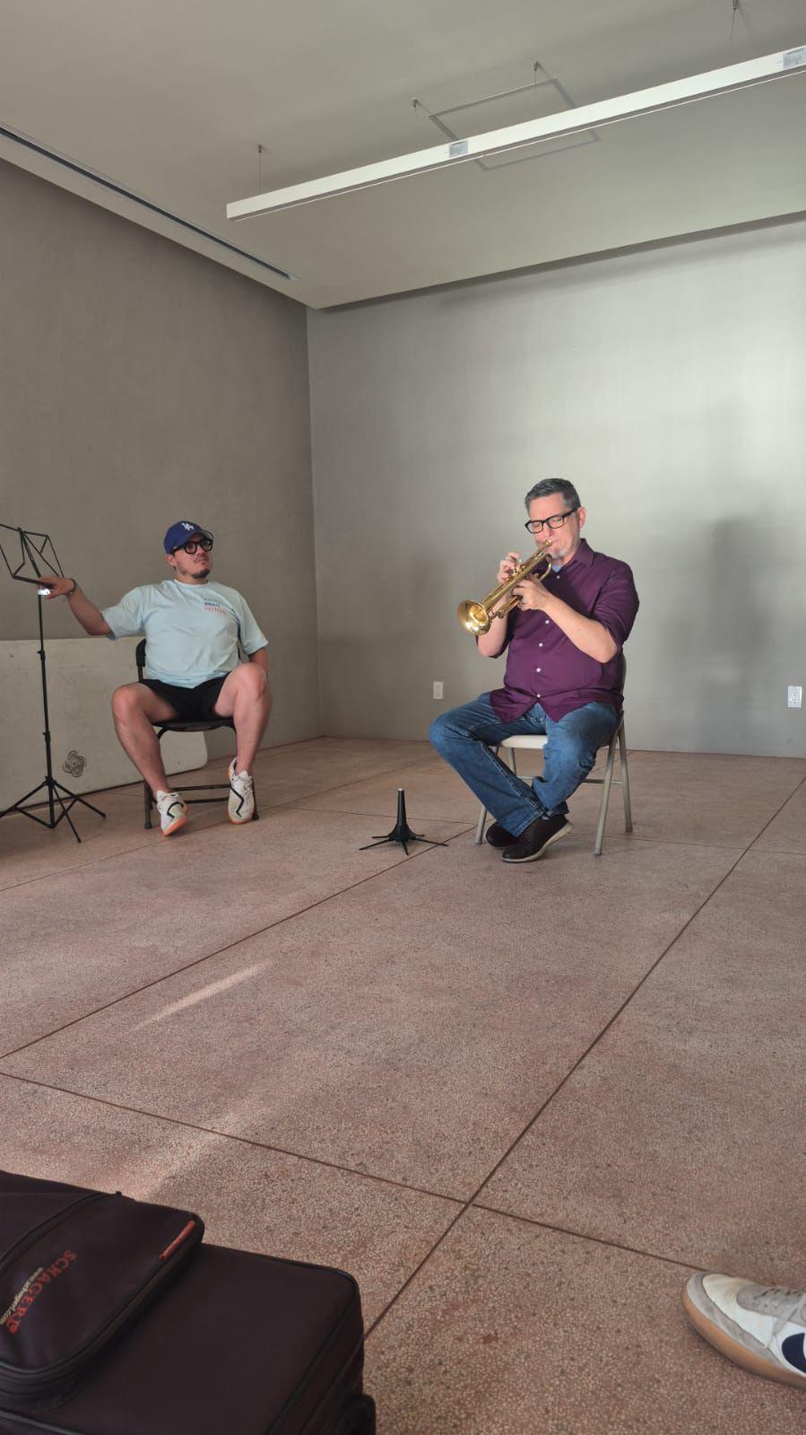 Mazatlán, Sinaloa, 15 de noviembre de 2025- La tarde del viernes, el Museo Casa del Marino se llenó de luz, brisa marina y un ambiente de total concentración, frente a un pequeño grupo de estudiantes, Rex Richardson tomó asiento, trompeta en mano, para ofrecer una masterclass que más que una clase sobre técnica, fue una conversación cercana, honesta y llena de humanidad.