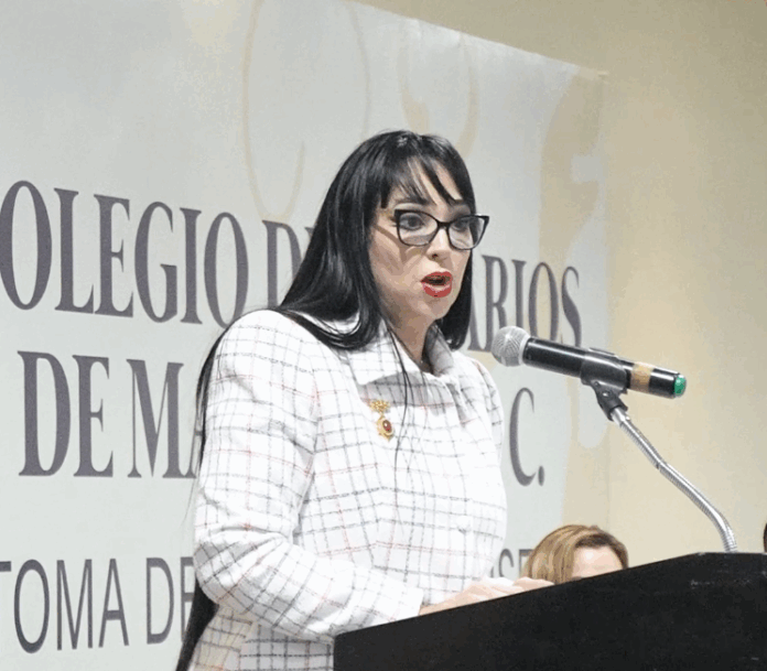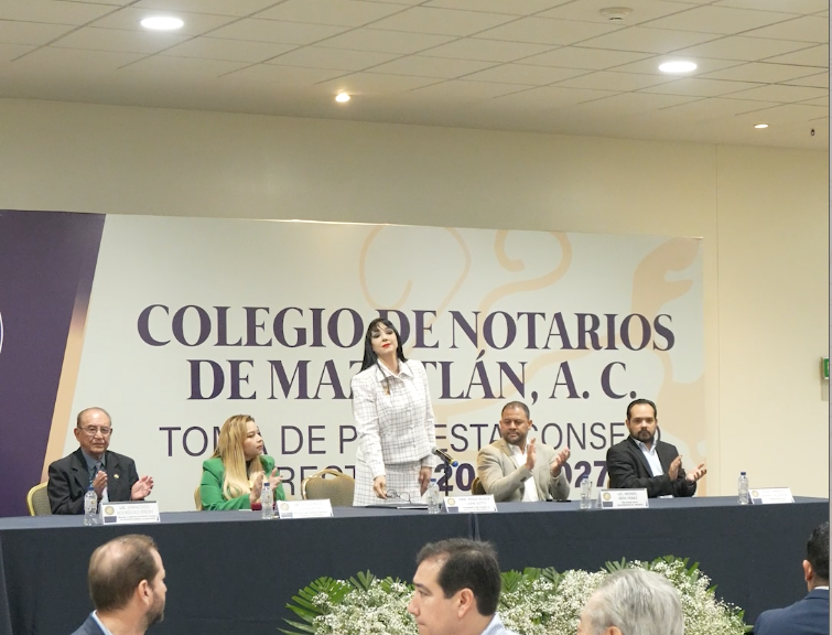 Rosa Alicia León Soto es la primera mujer que llega a la presidencia del Colegio de Notarios de Mazatlán, luego que el decano de este gremio Francisco Rodríguez Piñón le tomó protesta a toda la mesa directiva del 2026-2027, en un acto en el Centro Internacional de Convenciones.