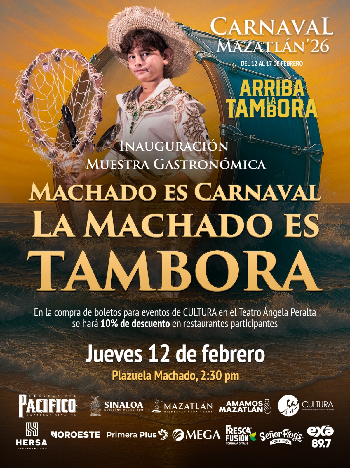 Este jueves 12 de febrero, deja que la tambora marque el ritmo, que el sabor conquiste el paladar y que la Plazuela Machado sea el punto de partida de una celebración que solo Mazatlán sabe ofrecer.