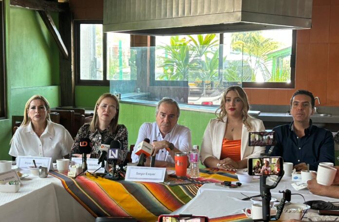El empresario y ahora integrante del MC al lado de la diputada local Elizabeth Montoya y de la regidora del partido en Cabildo de Mazatlán y dirigente municipal del MC, Mylai Quintero, entre otros reconocidos cuadros y dirigentes en la zona sur de Sinaloa, encabezó su primera rueda de prensa como líder estatal del “partido naranja”.