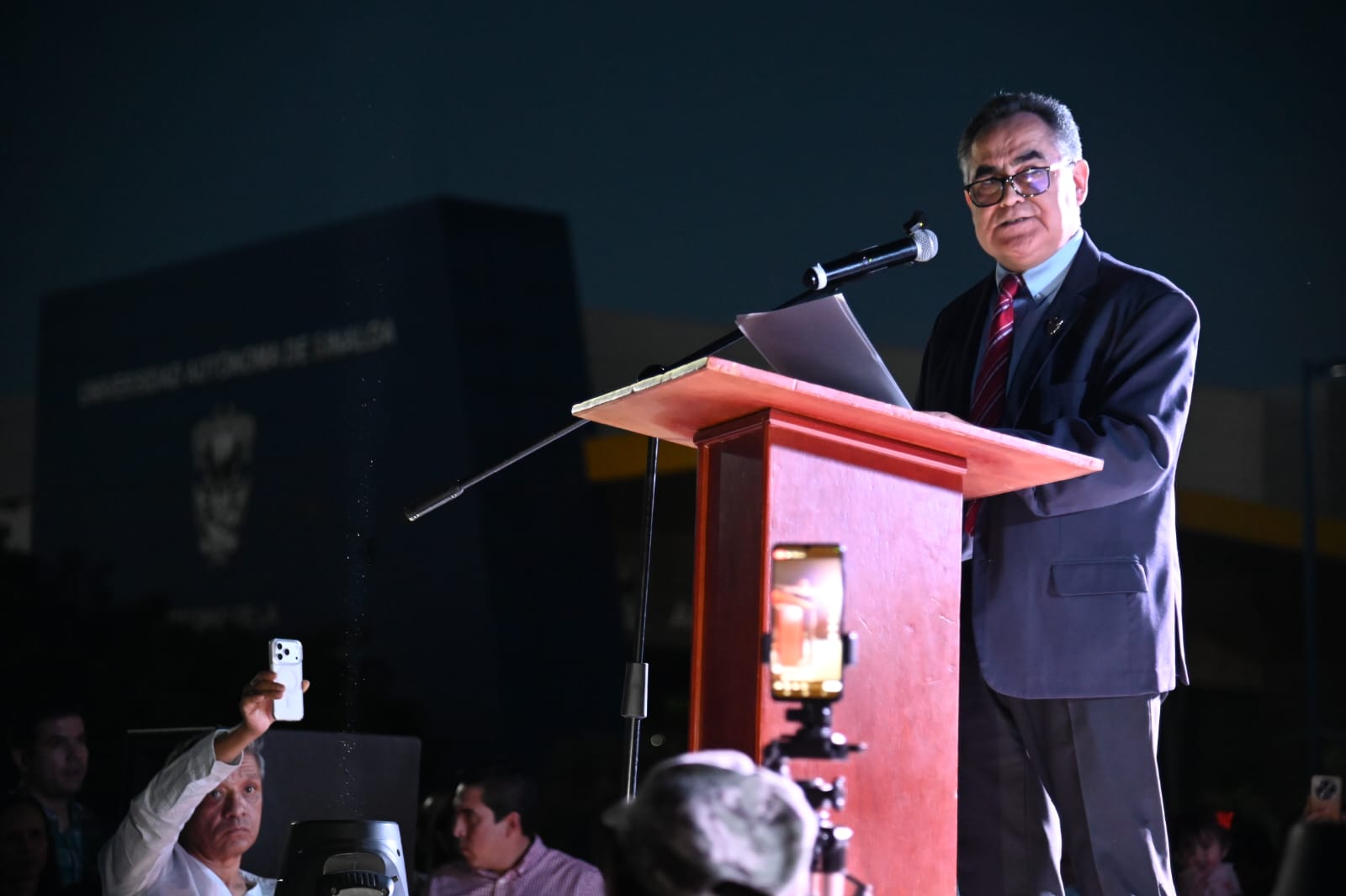 Con la emoción y alegría que trae consigo el inicio de la temporada navideña, la gran familia universitaria se dio cita en la explanada del Edificio de Rectoría de la Universidad Autónoma de Sinaloa (UAS) en el Campus Rafael Buelna, donde el Rector, doctor Jesús Madueña Molina y demás autoridades universitarias realizaron el tradicional Encendido del Árbol y encabezaron el Festival Navideño UAS 2025.