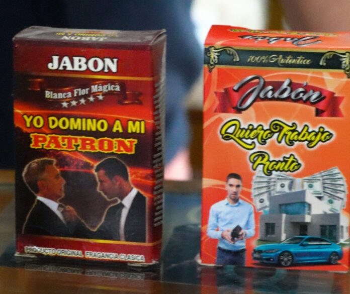 El jabón “Doblegar a mis Tías”, para dominar a las personas; otro jabón se llama “Amansa Guapos”, para que la novia controle a su príncipe azul; el “Atrapa Clientes” para jóvenes emprendedores de negocios y tener muchos compradores; el jabón “Yo Domino a Mi Mujer” para que las mujeres no anden de coquetas y birriondas; otro más “La Miel de Amor” que viene en una presentación muy “sexy” o cachonda.